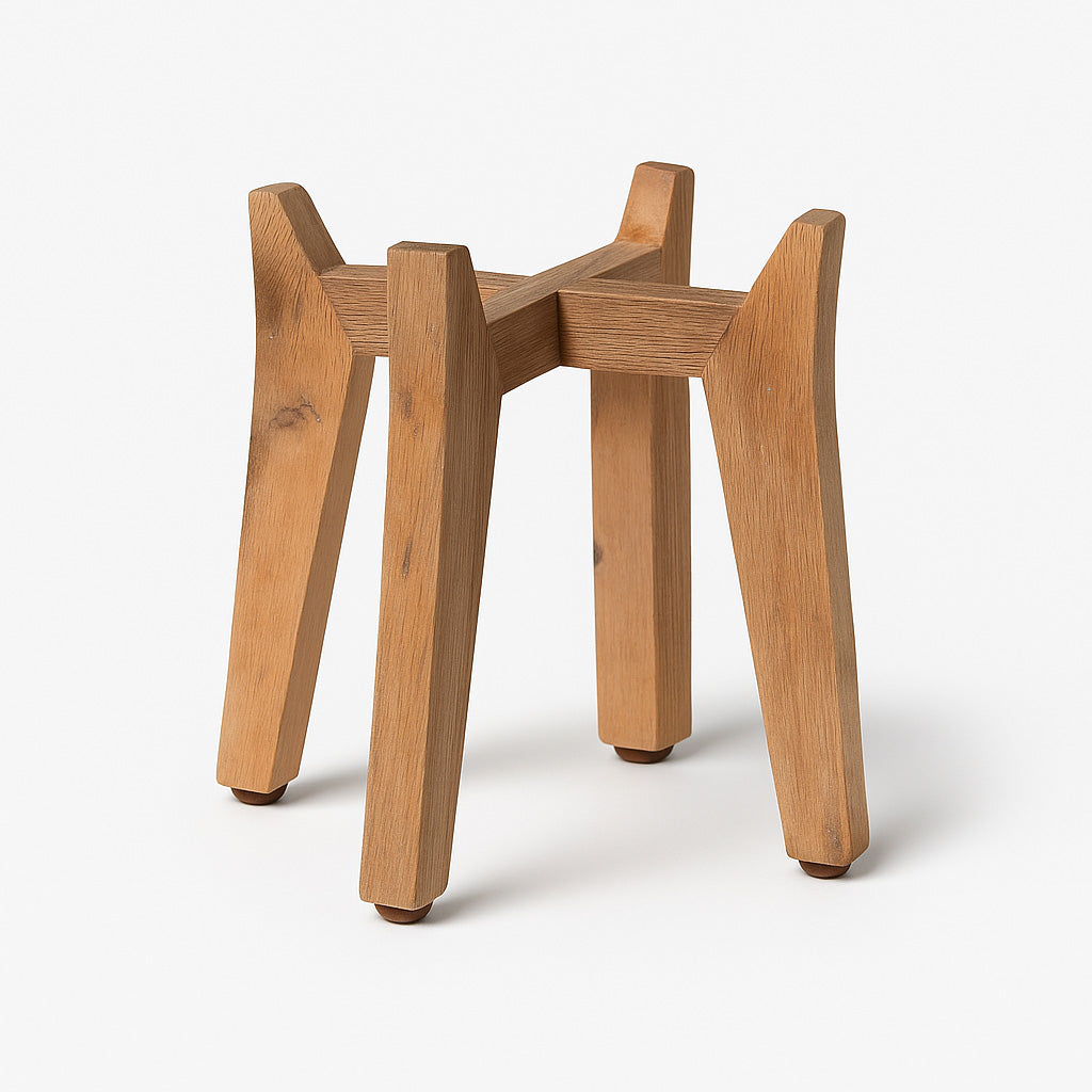 Unsere Holzfüße aus Naturholz bringen unsere Pflanzgefäße stilvoll auf Höhe – schnell montiert und ein echter Hingucker.